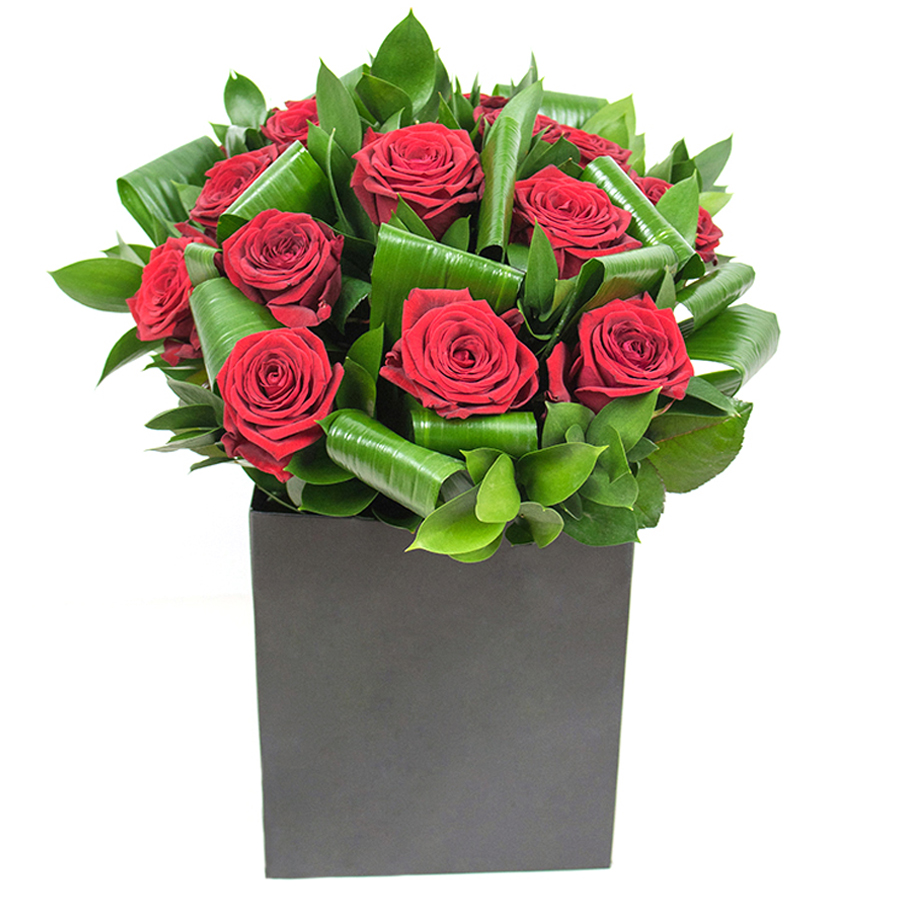 Experience the enchantment of true floral artistry with our timeless bouquet, featuring bold red roses combined with graceful aspidistra leaves and elegant ruscus. Each flower is hand-selected to ensure only the freshest, premium quality blooms form part of this sophisticated arrangement. Delivered in their bud stage, these flowers bloom before your eyes, transforming your space into a haven of beauty and elegance.
